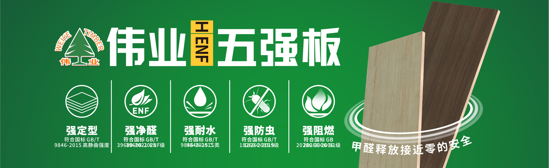 偉業(yè)牌板材打造一支專家技術(shù)團(tuán)隊,擁有國家發(fā)明專利生產(chǎn)工藝,憑借無機(jī)生態(tài)膠技術(shù)和30年板材生產(chǎn)經(jīng)驗,其產(chǎn)品品質(zhì)每項指標(biāo)均遠(yuǎn)優(yōu)于國家標(biāo)準(zhǔn)